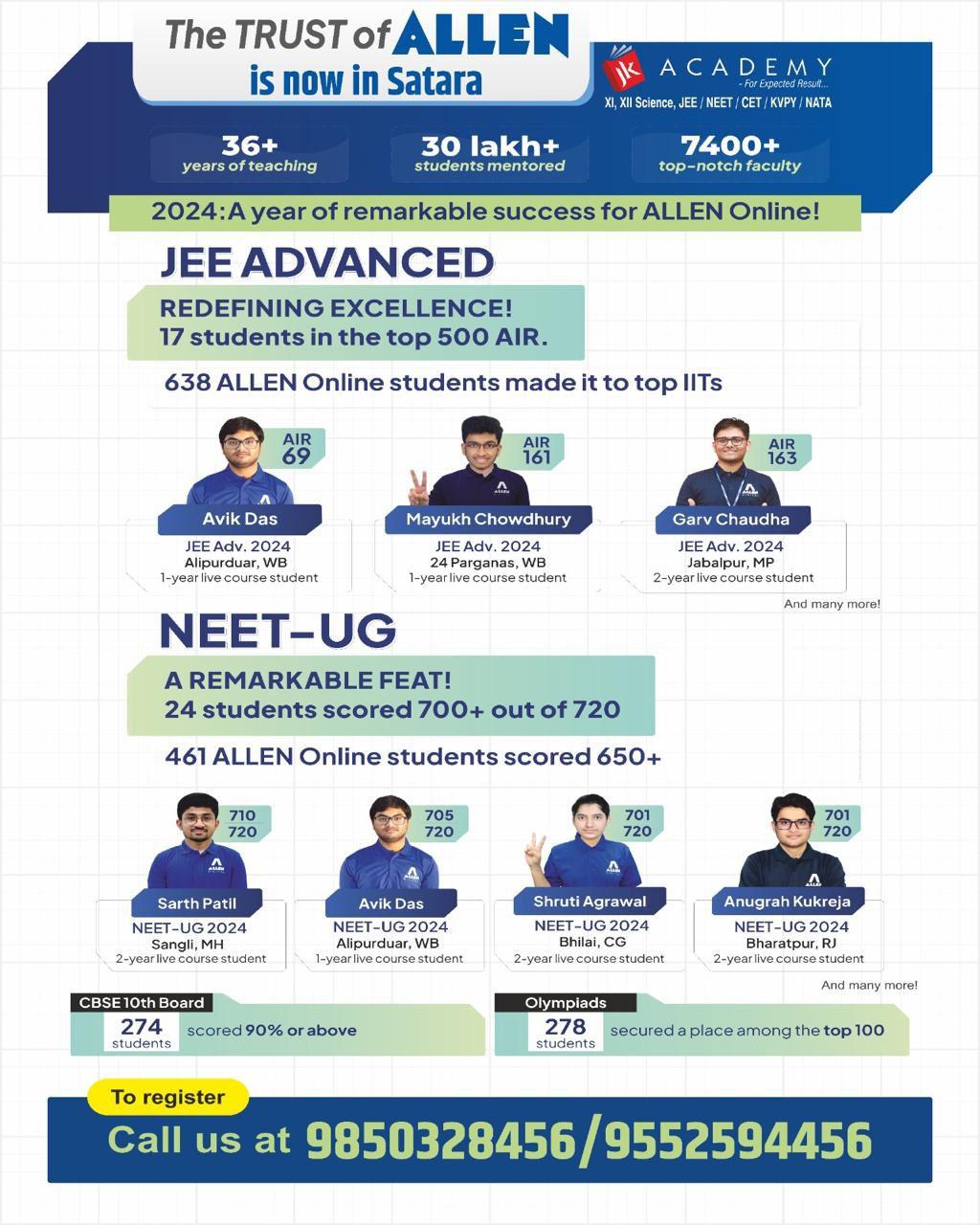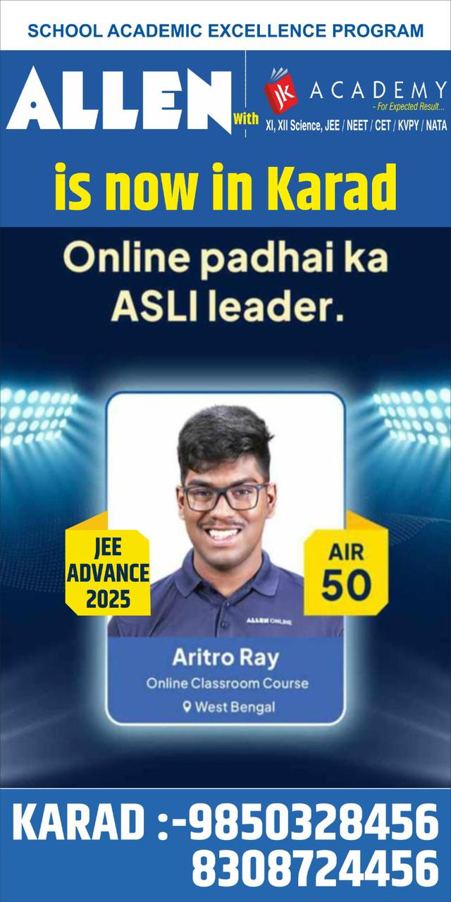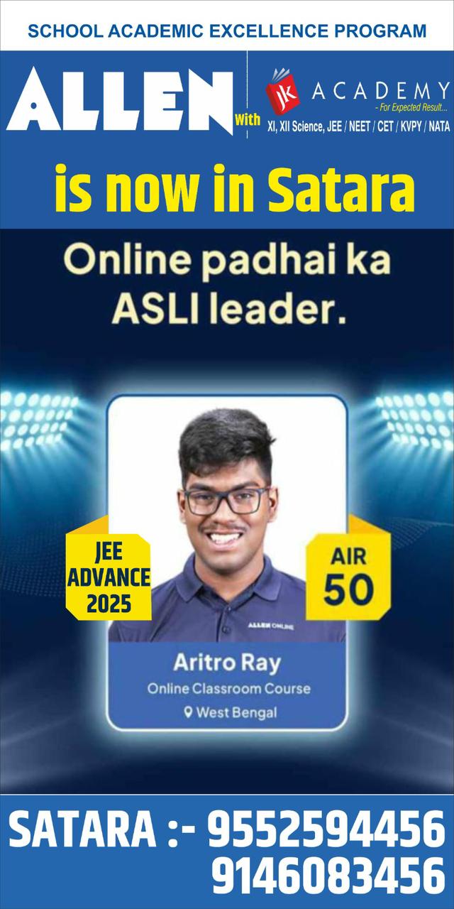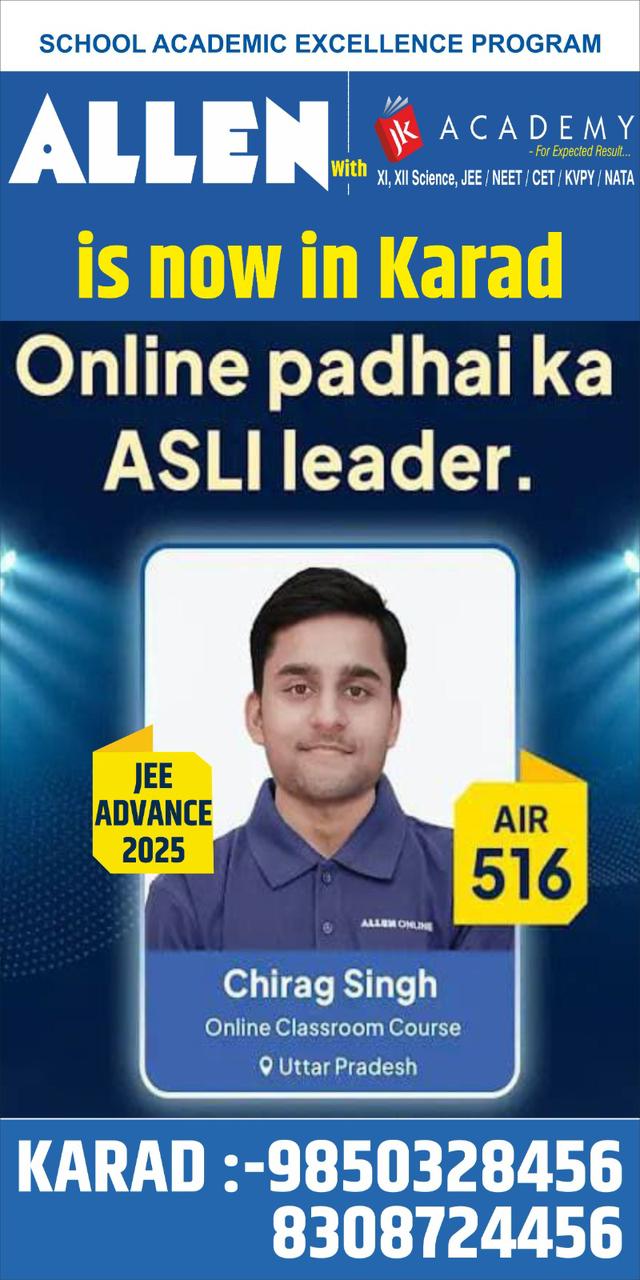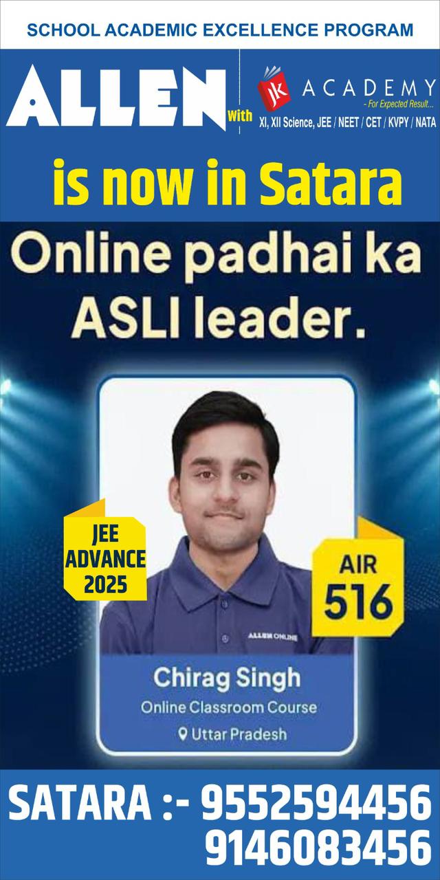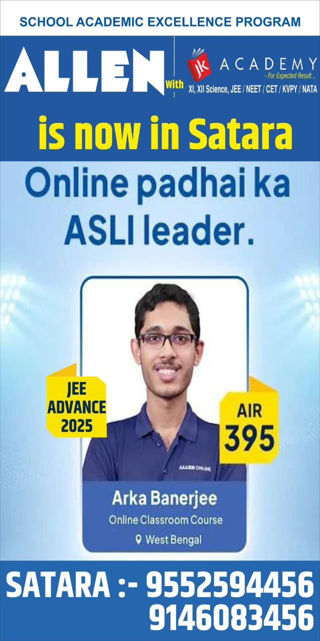 सर्व विद्यार्थ्यांनी १४/०६/२०२५ रोजी सायं. ठीक ४:०० वा जे. के. अकॅडमी, डेटाप्रो बिल्डींग, टिळक हायस्कूल कॉर्नर येथे हजर राहावे.